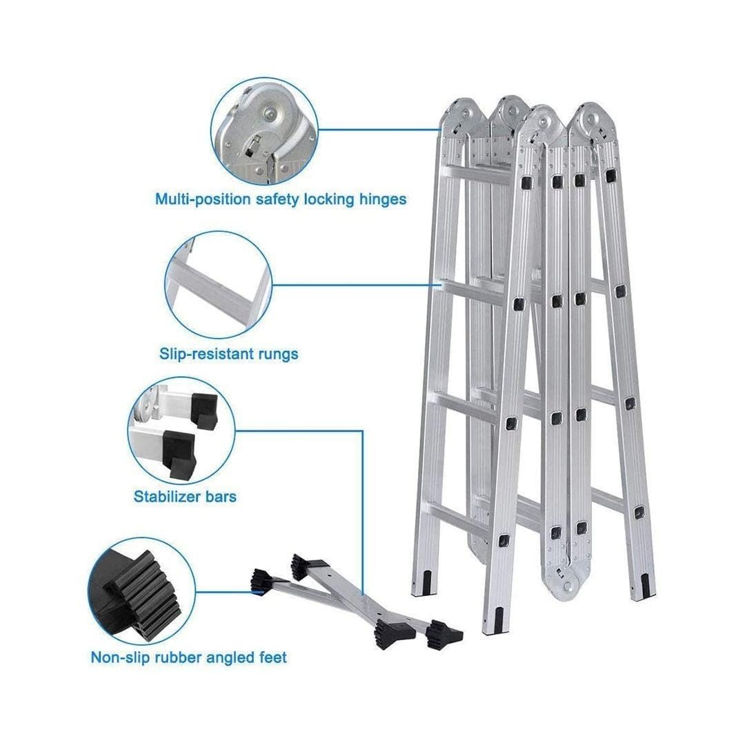 بتصميمه القابل للتعديل والمفاصل الآمنة، يمكنك استخدامه كسلم قائم، مزدوج، أو سقالة حسب الحاجة.