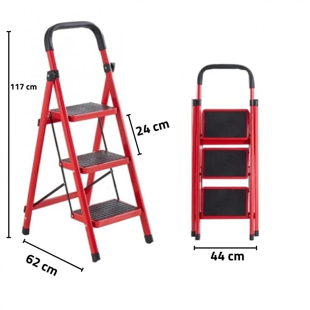 مع ارتفاع للدرجة الأخيرة يوصل 117 سم، يمنحك منطقة وقوف مريحة تساعدك تنجز أعمالك مثل تغيير اللمبات، تعليق الستائر، أو ترتيب الرفوف بدون قلق.