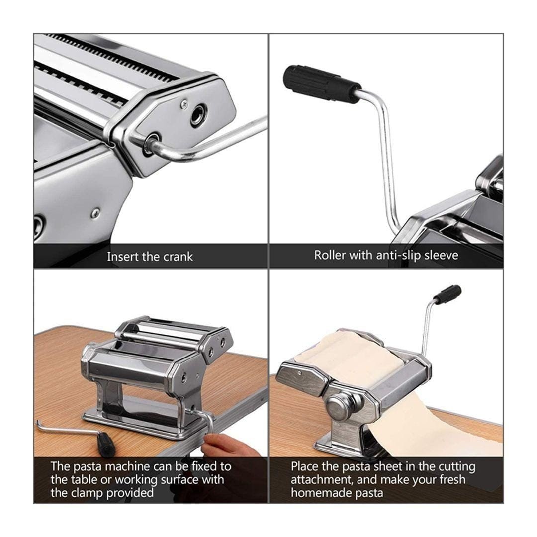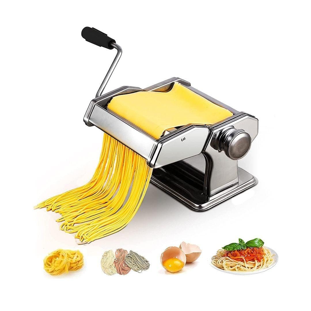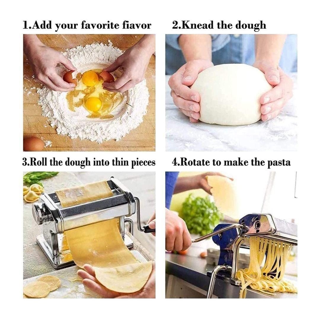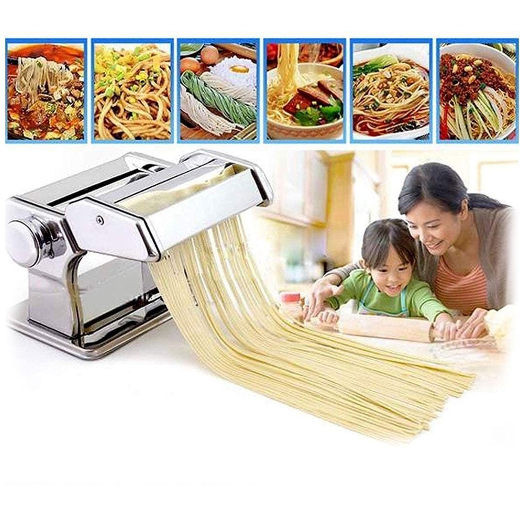 【جودة عالية】 آلة المعكرونة ذات القاطع المزدوج مصنوعة من الفولاذ المقاوم للصدأ عالي الجودة ، وهيكل متين ، وسهلة الاستخدام ، وسهلة التنظيف ، ومثالية لصنع مجموعة من أطباق المعكرونة الطازجة محلية الصنع.