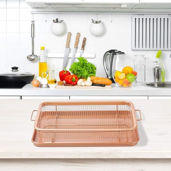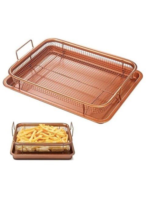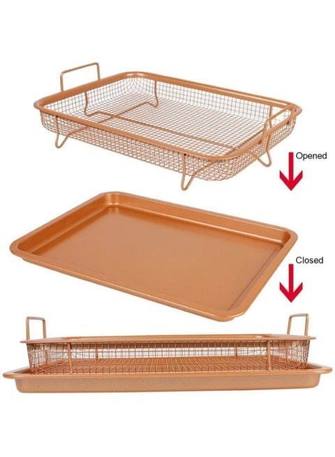 تُستخدم للقلي الصحي في الفرن، حيث تسمح بتدوير الحرارة حول الطعام لتحقيق قرمشة مثالية دون الحاجة إلى الكثير من الزيت. تحتوي على طبقة غير لاصقة معززة بالماس لتسهيل إخراج الطعام وتنظيفها بسهولة. تتكون من صينية شبكية مرتفعة وصينية سفلية، مما يسمح للحرارة بالوصول إلى كل زاوية من الطعام. آمنة للاستخدام في غسالة الأطباق ومقاومة للحرارة حتى 500 درجة فهرنهايت (260 درجة مئوية).