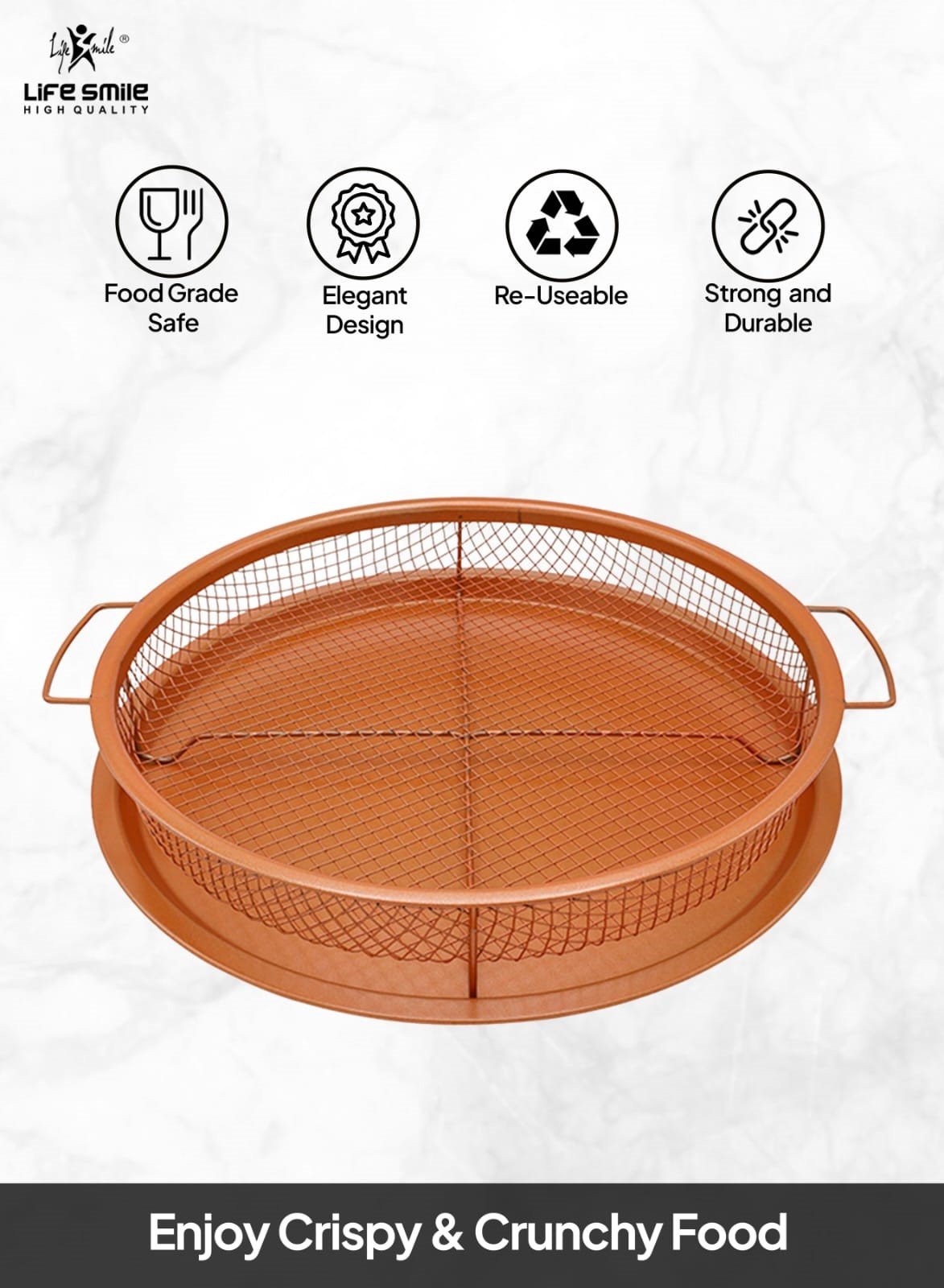 تُستخدم للقلي الصحي في الفرن، حيث تسمح بتدوير الحرارة حول الطعام لتحقيق قرمشة مثالية دون الحاجة إلى الكثير من الزيت. تحتوي على طبقة غير لاصقة معززة بالماس لتسهيل إخراج الطعام وتنظيفها بسهولة. تتكون من صينية شبكية مرتفعة وصينية سفلية، مما يسمح للحرارة بالوصول إلى كل زاوية من الطعام. آمنة للاستخدام في غسالة الأطباق ومقاومة للحرارة حتى 500 درجة فهرنهايت (260 درجة مئوية).
