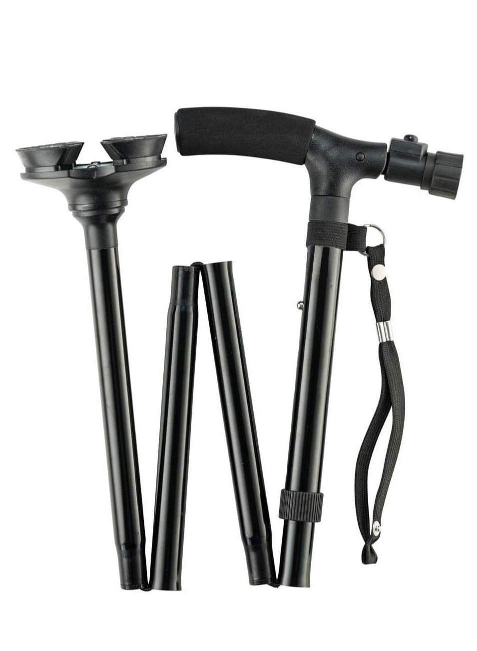 المقبض الثاني للوقوف: العصا القابلة للطي لها مقبض ثانٍ للوقوف.