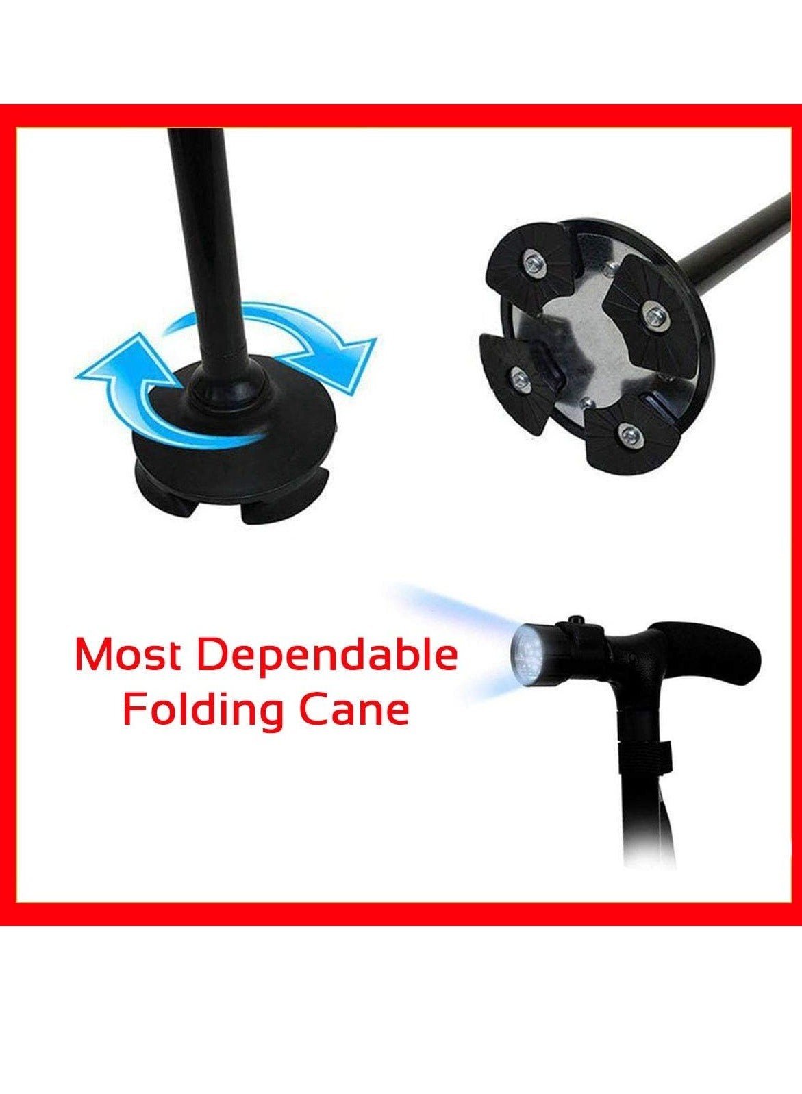 بالإضافة إلى ذلك، تأتي عصا المشي مع ضوء ليد مدمج يضيء طريقك، مما يضمن السلامة أثناء المشي ليلاً.