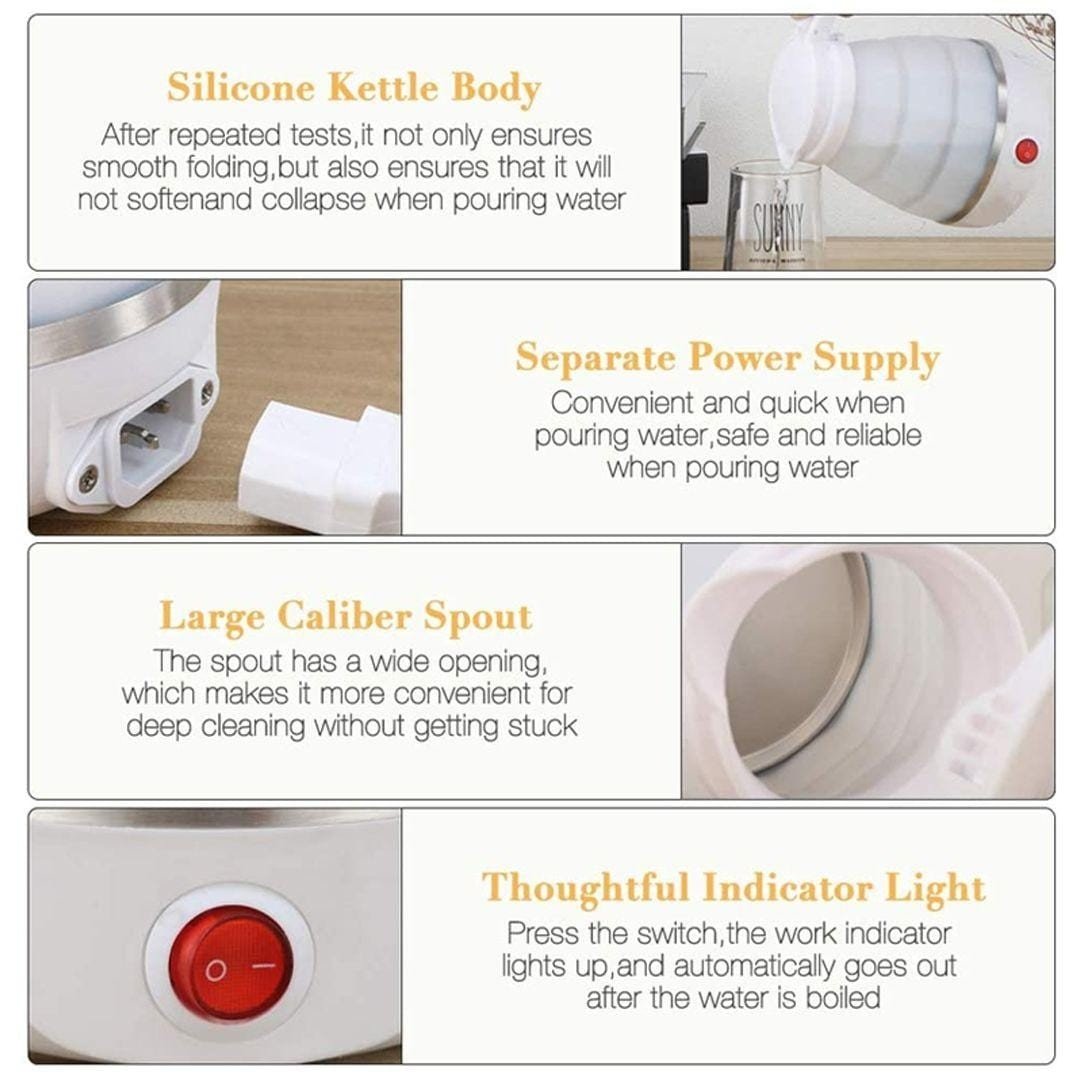 الغلاية الكهربائية مريحة للغاية وخفيفة الوزن لتحملها معك أثناء السفر بسبب تصميمها القابل للطي ، مما يوفر مساحة كبيرة عند التعبئة.
