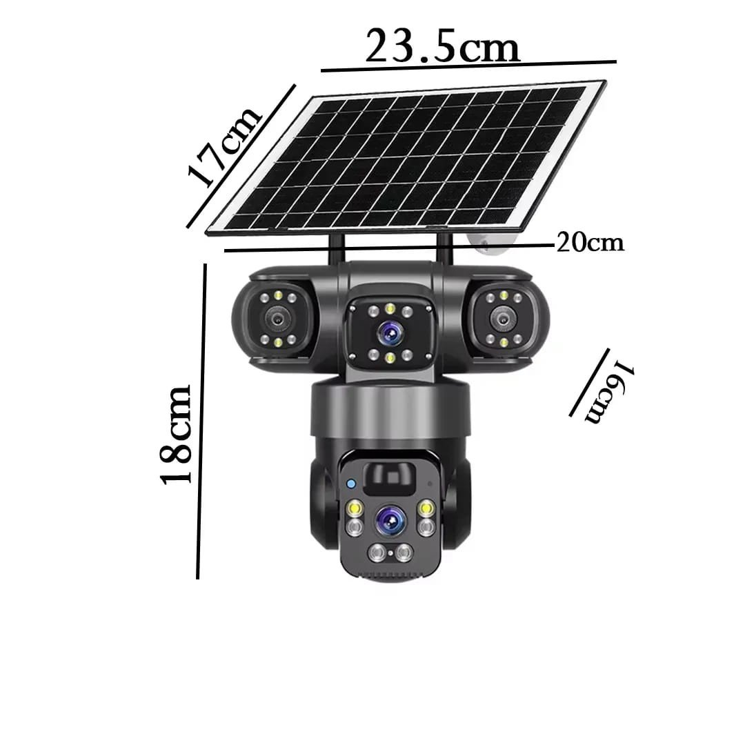محتويات الصندوق: 1 × كاميرا V380 رباعية FHD 1 × لوح طاقة شمسية 1 × كابل Type-C 1 × دعامة تثبيت 1 × براغي تثبيت 1 × دليل مستخدم