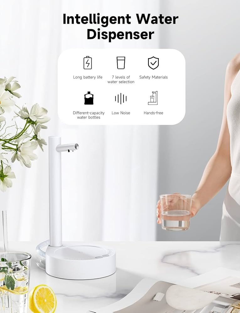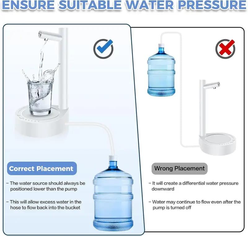 تشغيل بلمسة واحدة: يضخ المياه بسرعة ودقة من عبوة الماء مباشرة.